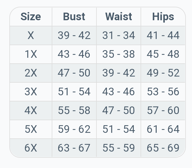 Bust: 41 1/2 Waist: 37 Hips: 52 1/2